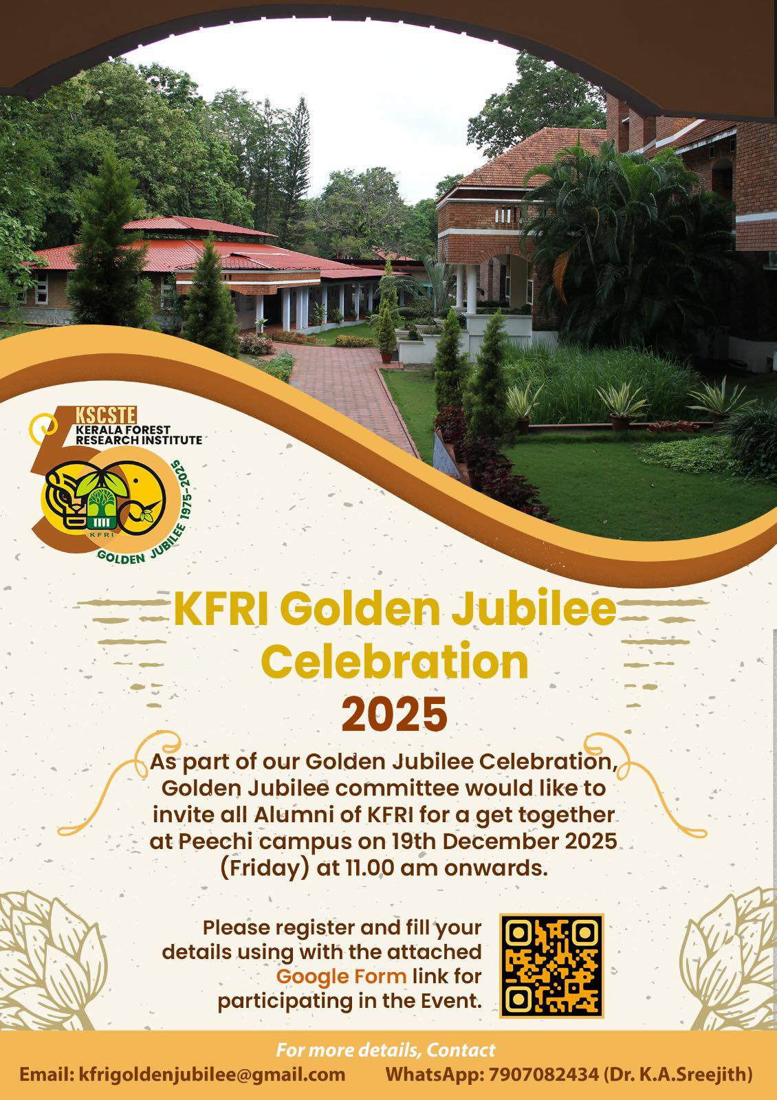 Join us for a special Alumni Get-Together as part of the KFRI Golden Jubilee Celebration 2025. Letโs reconnect, reminisce about the good old days at Peechi, and celebrate this milestone together! ๐ฟโจ